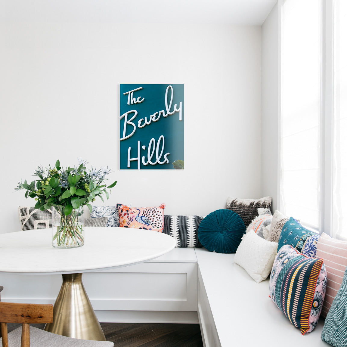 It's more than a sign, it's an icon. Jan Birch's close-up on that renowned script will bring an instant Old Hollywood elegance to any room. Is there any chicer way to welcome your guests?