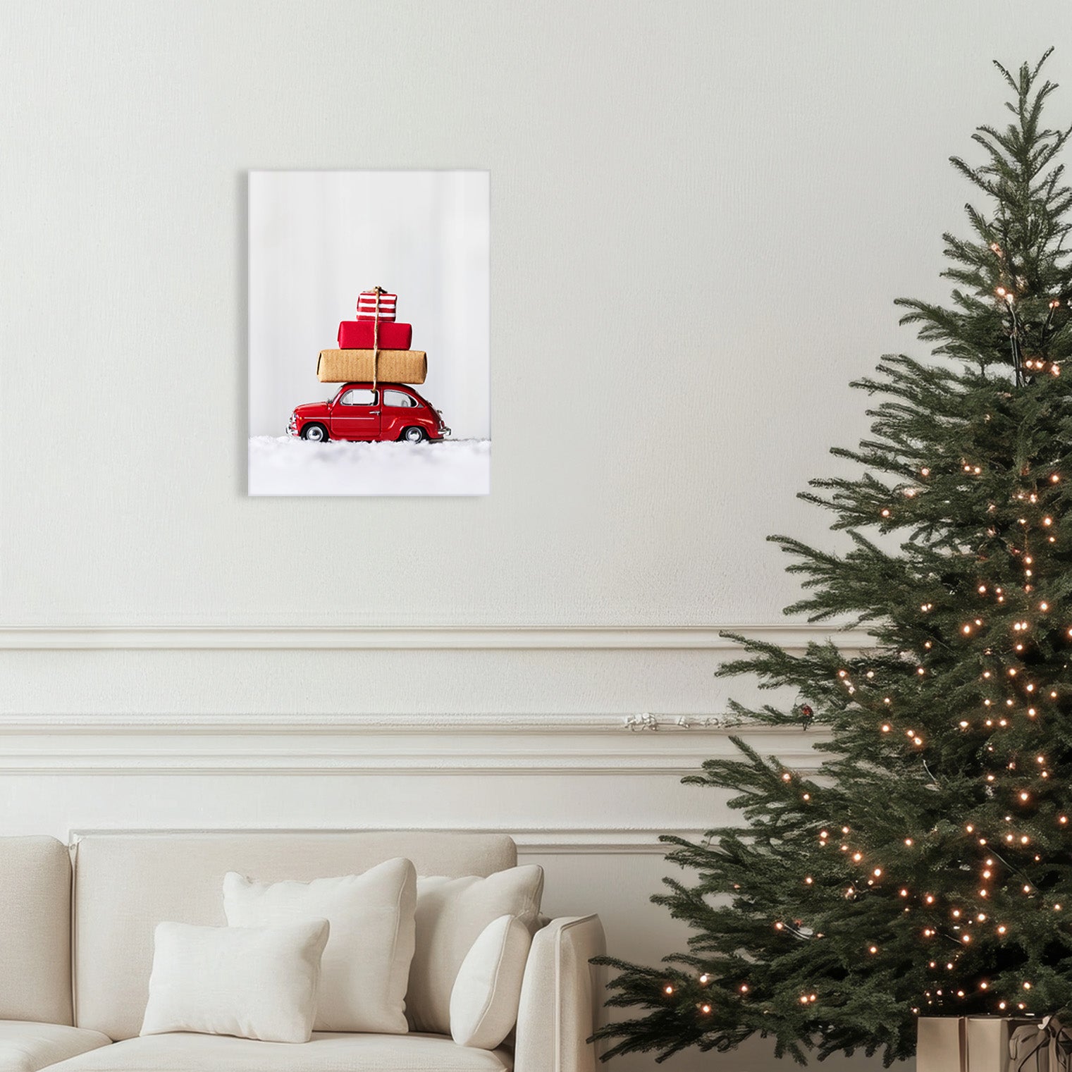 Small car, big holiday energy. This little red car stacked high with gifts is ready to drive a little Christmas magic into your home.